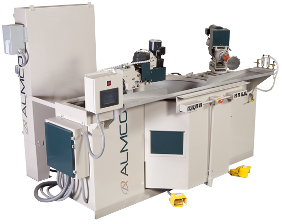 Almco是美國一家70多年歷史的機(jī)械零件表面處理公司,有著深厚的技術(shù)積累。服務(wù)領(lǐng)域集去毛刺,打磨,清洗,光飾于一體。適用產(chǎn)品從小尺寸機(jī)械零部件到最大的飛機(jī)發(fā)動(dòng)機(jī)零部件。客戶主要集中在波音,普惠等一流飛機(jī)零部件生產(chǎn)企業(yè)。本次以其最具代表性的旋轉(zhuǎn)軸精密去毛刺設(shè)備(Spindle Finishing Machine)為例介紹如下該機(jī)型主要用于高精度產(chǎn)品的去毛刺,適合大型不見貨多種小型零件的組合件,磨料磨削液已高達(dá)1000ft/min的限速的旋轉(zhuǎn)移動(dòng),旋轉(zhuǎn)所產(chǎn)生的離心力帶動(dòng)介質(zhì)轉(zhuǎn)動(dòng)從而形成一個(gè)“砂輪”,零件緩慢旋轉(zhuǎn)確保能對所有表面進(jìn)行修邊和去毛刺。此設(shè)備用于齒輪,曲軸,軸承套,花鍵軸,泵轉(zhuǎn)子,噴氣發(fā)動(dòng)機(jī)葉片等